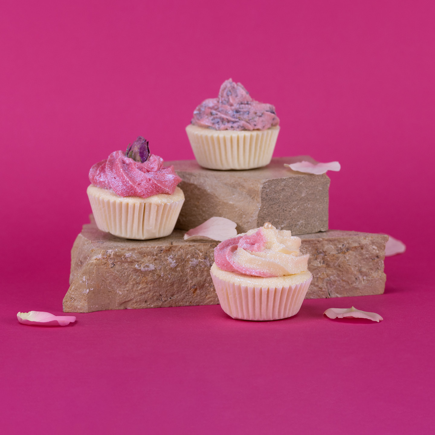 Lassen Sie Ihre Seele baumeln und gönnen Sie sich und Ihrer Haut eine Auszeit mit unseren GREENDOOR Badecupcakes Frozen Rose. Sie erhalten 6 Badecupcakes Frozen Rose mit drei verschiedenen Toppings. Sie duften alle zart rosig und strahlen im zarten Pastell mit einem Hauch von glamourösem Glimmer.