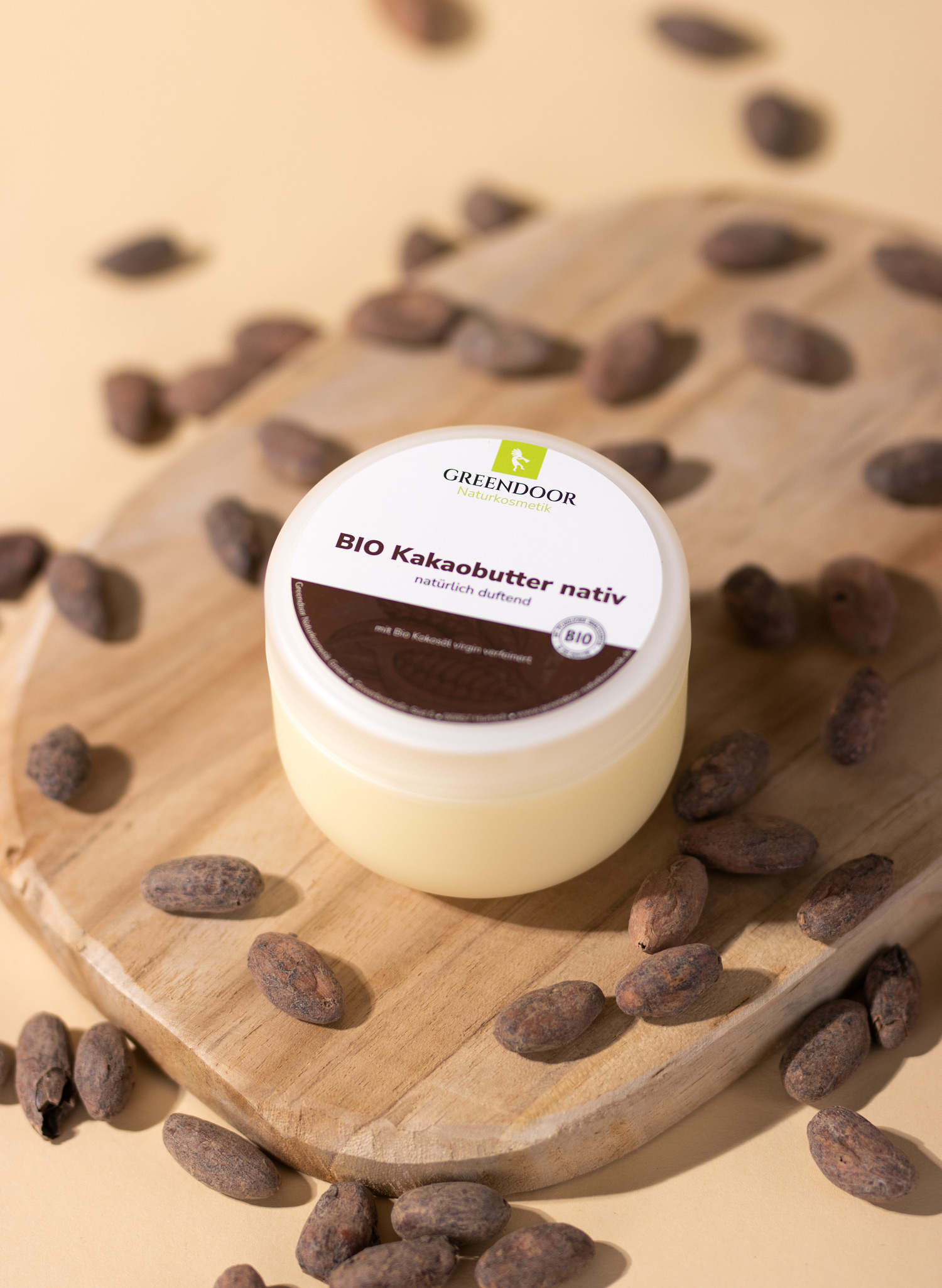 Greendoor Bio Kakaobutter virgin ist reich an Vitaminen, Mineralien und Spurenelementen. Laurinsäure + Antioxidantien sind zellschützend und geben Ihrer Haut ein gesundes Aussehen.
