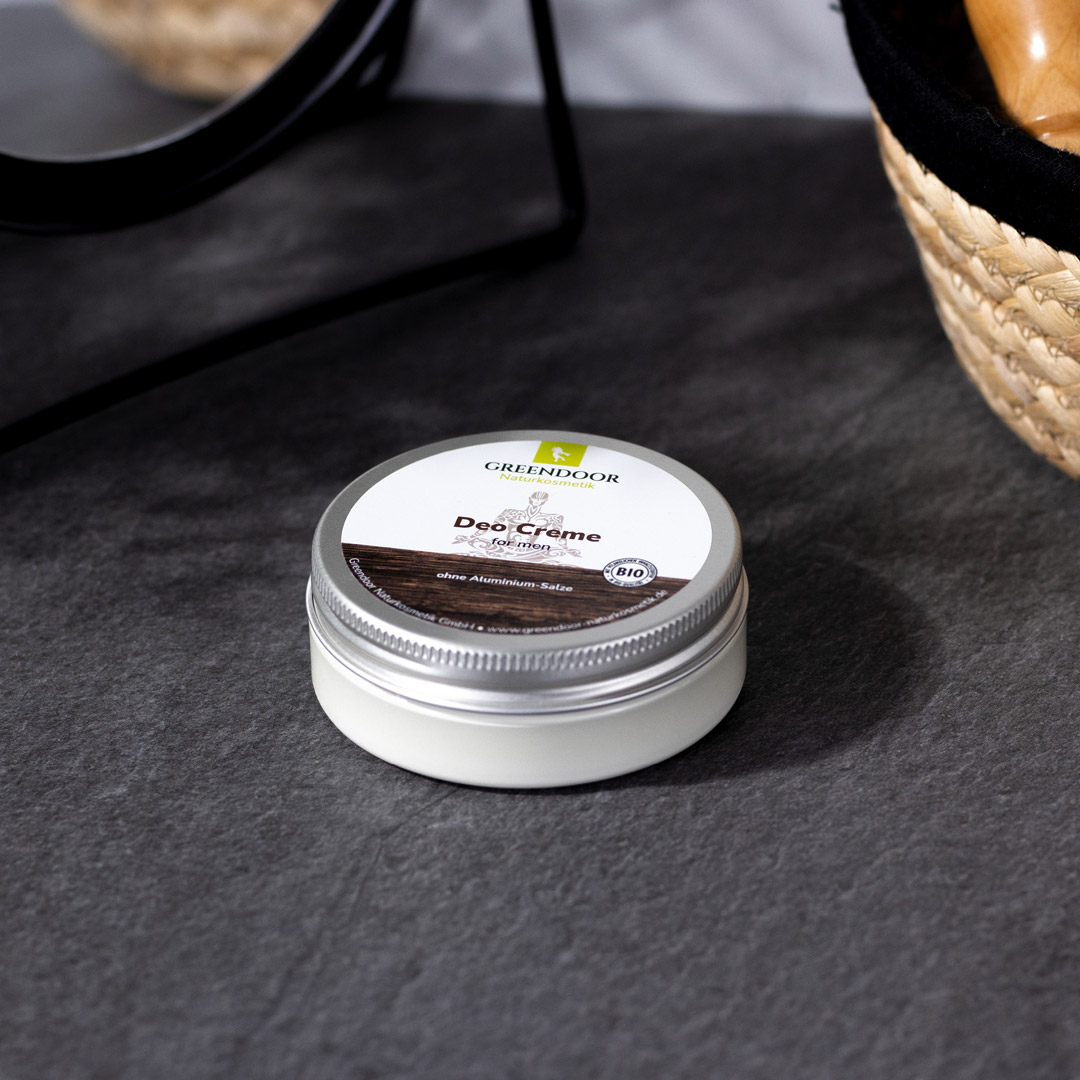 Das GREENDOOR Naturkosmetik Deo für Männer kommt ohne Aluminiumsalze und ohne Alkohol aus. Das feste Cremedeo läßt deine Haut atmen, absorbiert Schweißgeruch, verklebt nicht die Poren und läßt dich den ganzen Tag nicht im Stich. Fest versprochen - auch wenn deine Achseln nicht rasiert sind.