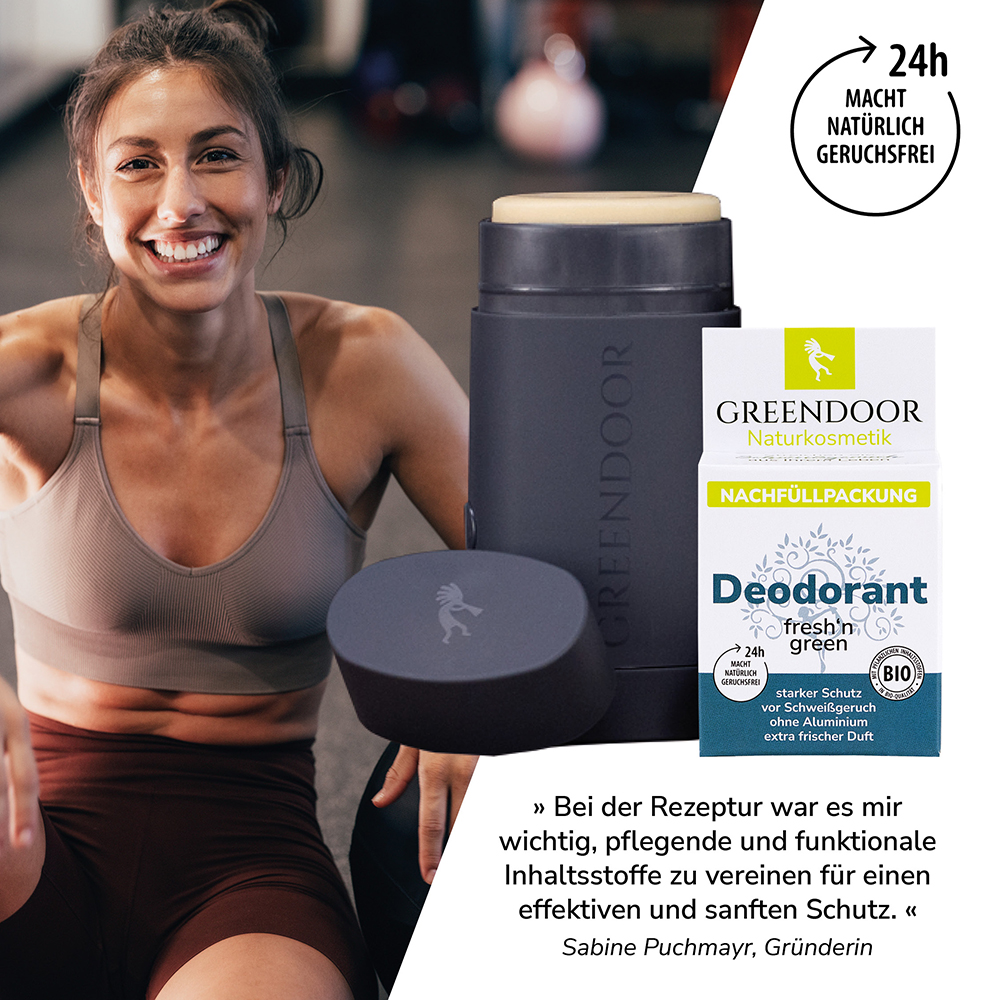 Streiche Schweißgeruch aus deinem Leben – mit dem GREENDOOR Deodorant Nachfüllsystem. Das innovative hoch wirksame Deodorant System mit 24h+ Schweißgeruch-Freiheit setzt neue Maßstäbe in der nachhaltigen und aluminiumfreien Körperpflege.