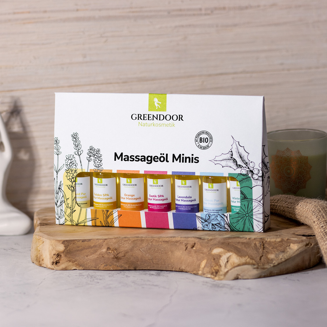 Das Massageöl mini Set ist unsere Angebotsform für Sie zum Testen und Ausprobieren zum kleinen Preis. Das Massageöl Geschenk Set ist ideal, um für sich die passenden Sorten herauszufinden. Als Massageöl für Partner Massagen haben die Fläschchen gerade die richtige Größe für eine Ganzkörpermassage.