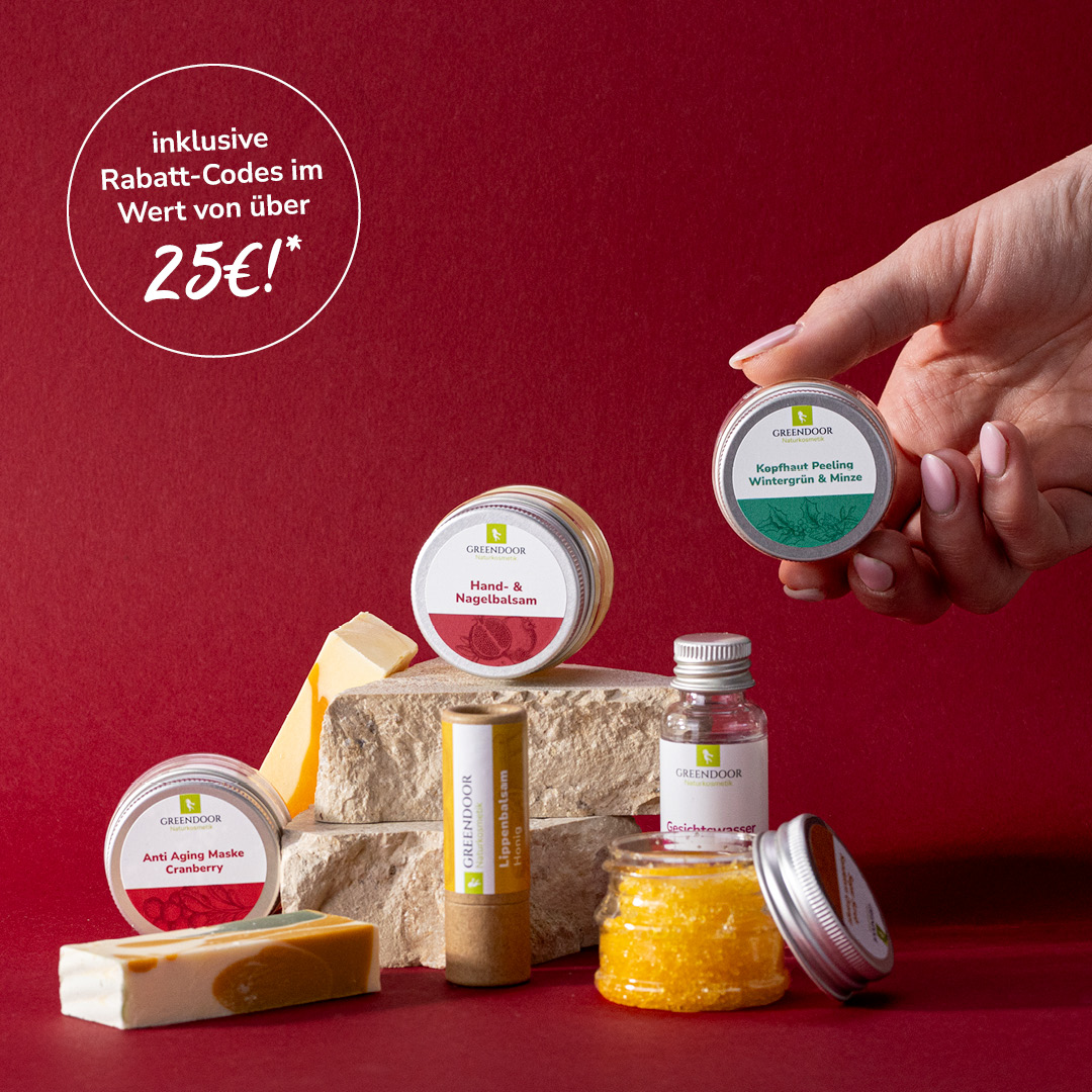 Neben dem Vergnügen, neue Produkte wie unsere Deo Creme Naturally Safe zu testen, erhalten Sie mit unserem Geschenkset exklusive Rabattcodes auf die jeweiligen Originalprodukte im Gesamtwert von 25€. So können Sie sich Ihre Lieblingsprodukte zu einem vergünstigten Preis sichern. Ihre Haut wird es Ihnen danken, wenn Sie sich für hochwertige Naturkosmetikprodukte von GREENDOOR entscheiden.