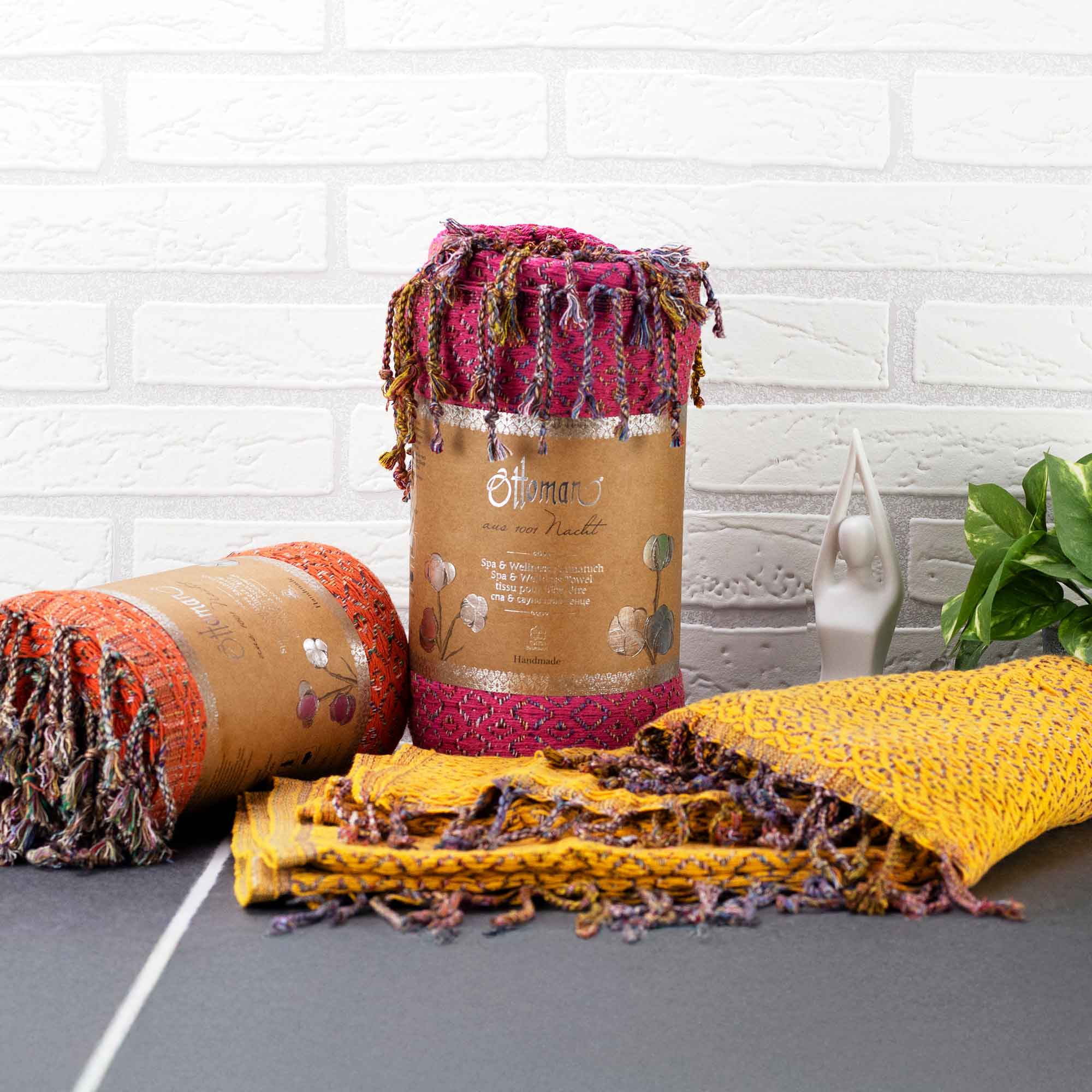 Das Premium Hamam Tuch Jasmin überzeugt durch seine besonders weiche Baumwollfaser und sein edles Webmuster. Traditionell dient es als Lendentuch beim Besuch eines Hamambades. Seine feine Baumwollstruktur ist atmungsaktiv, saugfähig und trocknet schnell ab. Es passt in jede Tasche und ist somit der ideale Reisebegleiter.