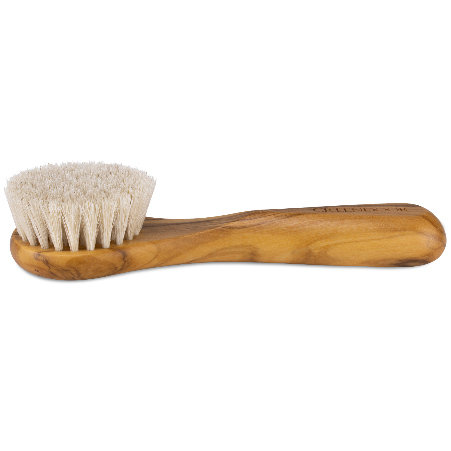 Natürliches Gesichtspflege Set. Durch Aufschütteln der 2 Phasen werden die hochwertigen Inhaltsstoffe vermischt. So entsteht ein besonders cremiger, milder Reinigungsschaum, der Ihre Haut besonders sanft von Make-Up-Resten, negativen Umwelteinflüssen und Hautschüppchen befreit und nicht austrocknet. Mit Hilfe der weichen Mähnenhaar Borsten der Gesichts-Massagebürste wird die Gesichtsreinigung noch effektiver. Sanfte kreisende Bewegungen fördern die Durchblutung und verbessern das Hautbild.