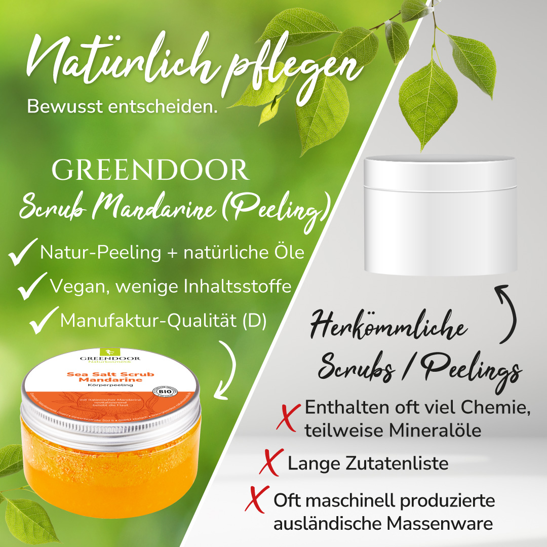 Genau das hat GREENDOOR seinem Körperpeeling Mandarine mitgegeben. Der herrliche Duft sonnengereifter Mandarinen fein abgestimmt mit italienischem Orangenöl ist wohltuend und aufheiternd.