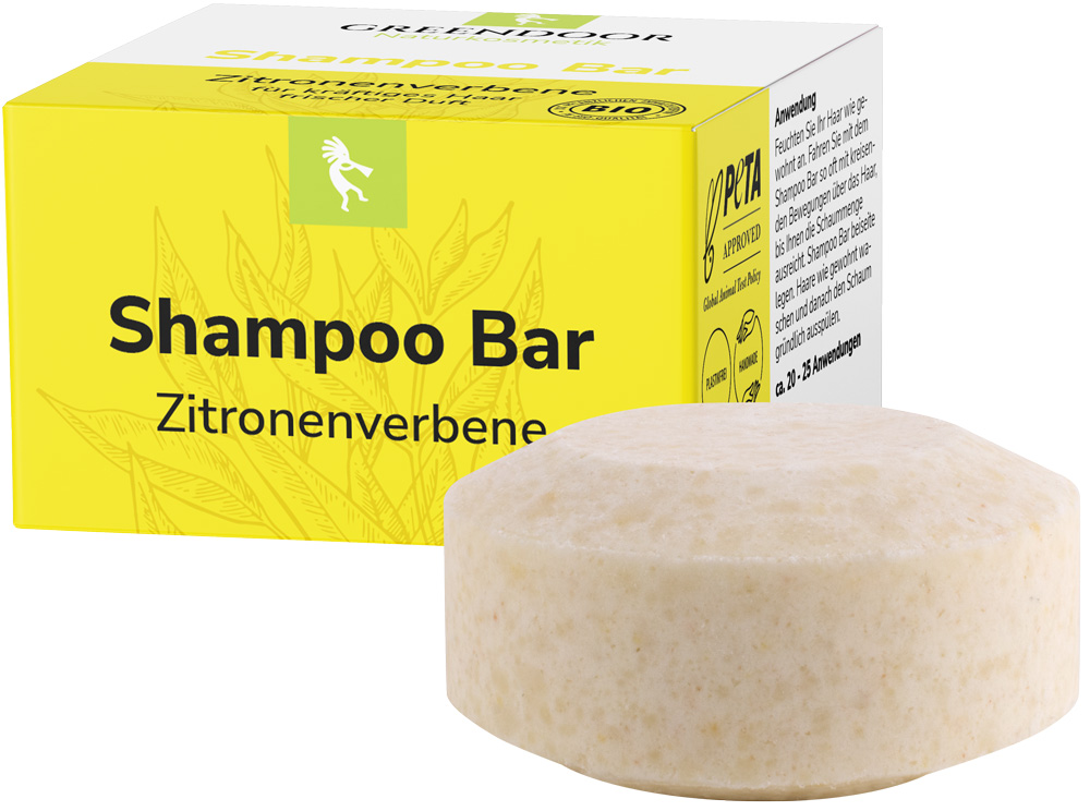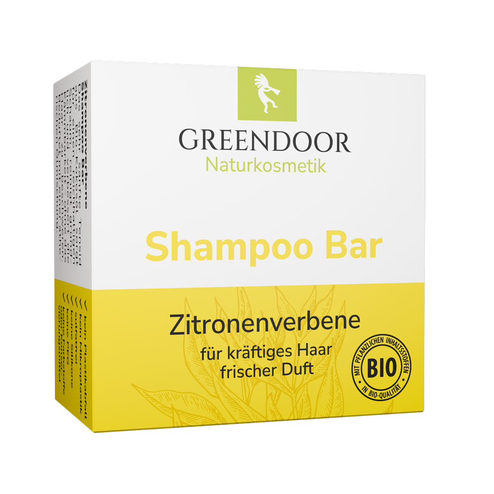 Der vegane GREENDOOR Shampoo Bar enthält eine geballte Ladung natürlicher Pflege für Ihr Haar aus Bio Sheabutter, Bio Brokkolisamenöl, Bio Kakaobutter, Bio Kokosöl, Kieselerde und Aloe Vera. Sie verzichten nur auf Wasser, Konservierer, Emulgatoren, Plastik und Silikone. Der Shampoo Bar duftet zitronig frisch nach dem enthaltenen ätherischen Öl Zitronenverbene. Freuen Sie sich bereits nach wenigen Wochen auf gesundes, natürliches gekräftigtes Haar.